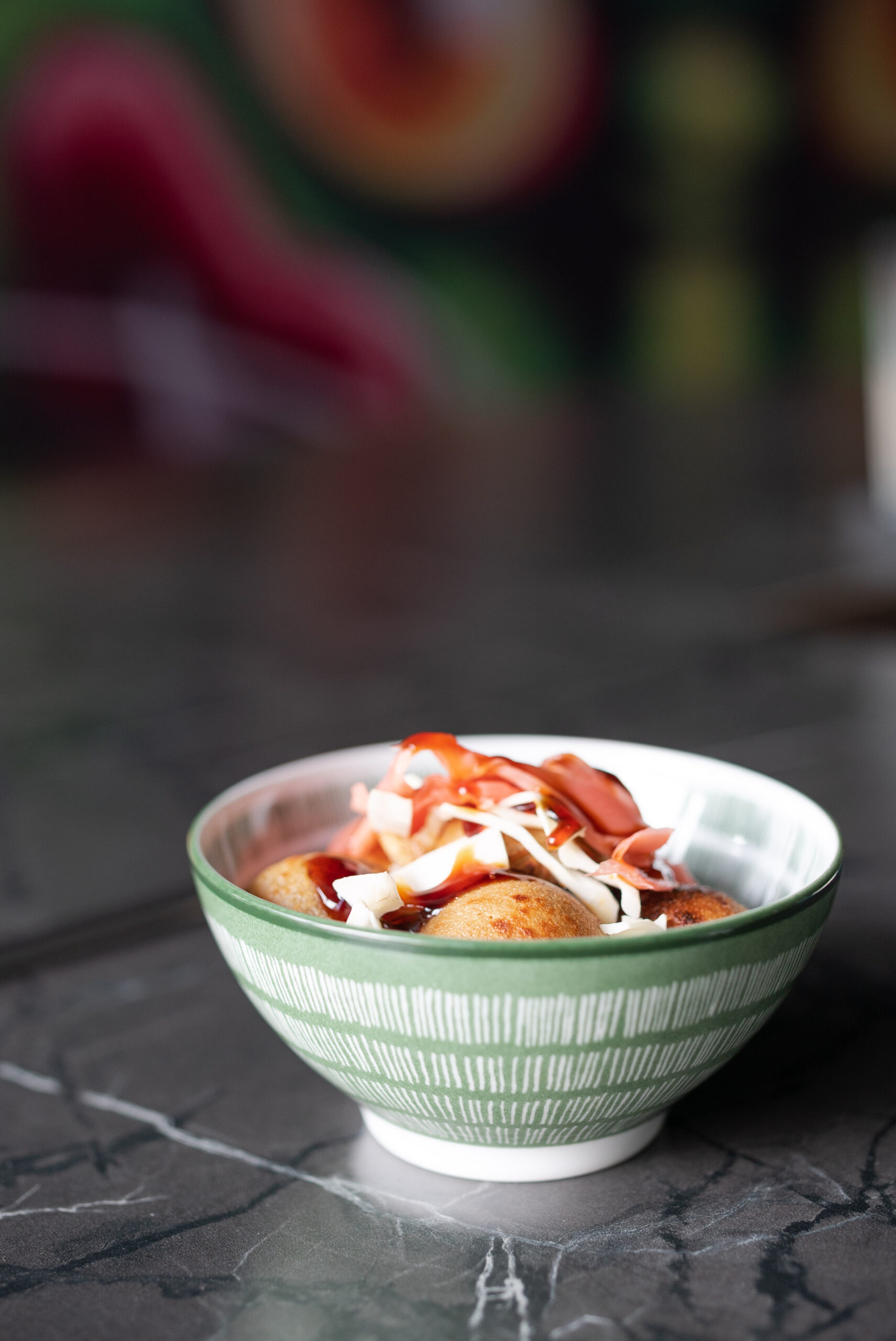 6 bolitas de pulpo capeado, col, jengibre encurtido y salsa de angila. (150 gr)