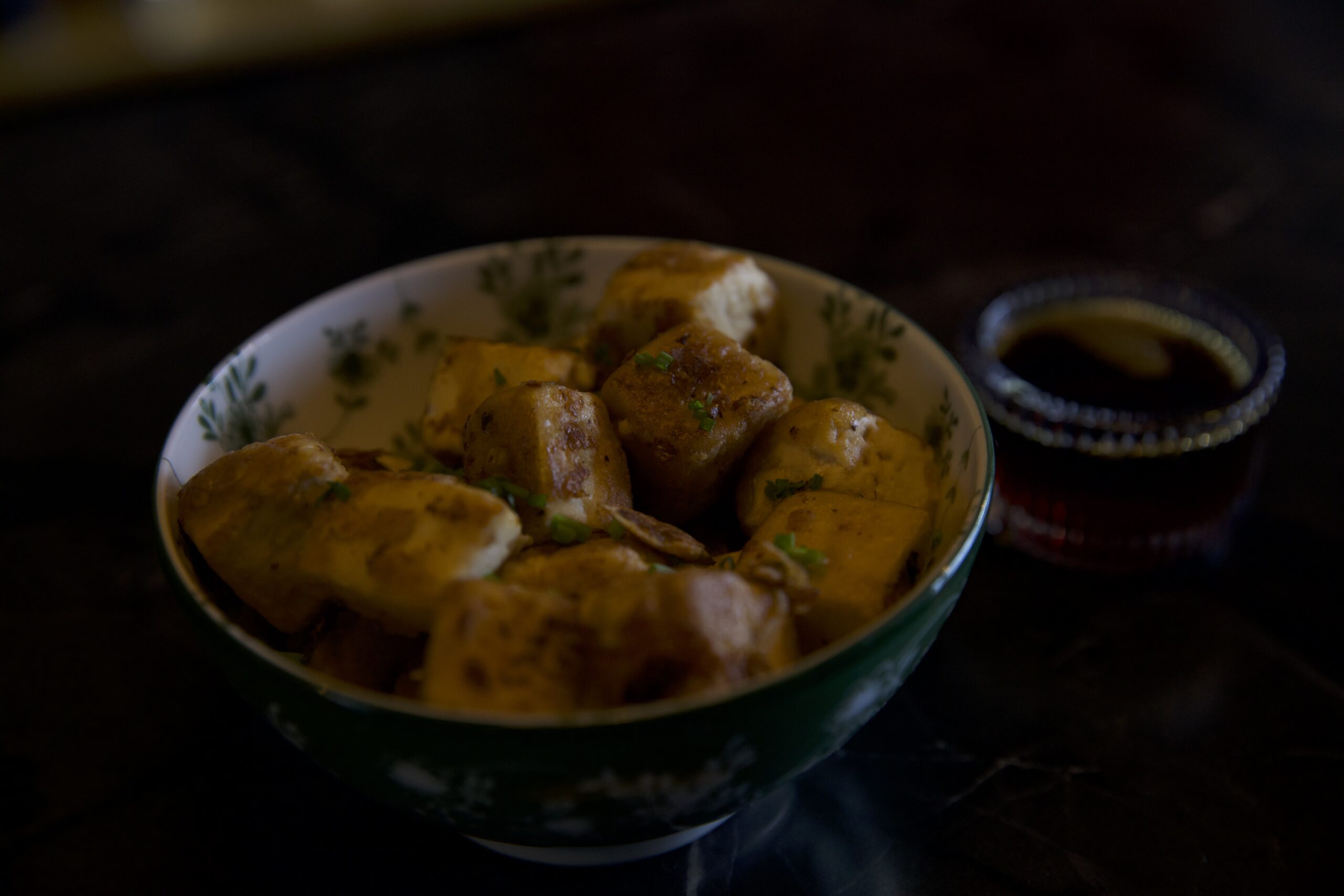 115 gr de tofu frito acompañado de salsa teriyaki.